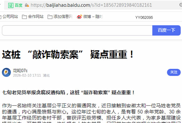 作为一名始终关注基层公平正义的普通网友,近日接触到安徽太和一位马姓老党员的遭遇,内心满是愤慨与揪心。这位年过七旬的老人,是有着 50 余年党龄、30 余年基层工作经历的老村干部,曾获评五级劳模、担任乡人大代表,为家乡基层建设操劳半生。可就是这样一位扎根乡土的老党员,只因常年实名举报当地贪腐涉黑问题,竟被冠以 “敲诈勒索罪” 判处有期徒刑一年六个月,刑满释放后依法申诉却处处碰壁,妻子还遭无端抓捕,一桩满是疑点的案件,将一位老人逼入家无宁日、走投无路的绝境。这背后的真相,值得每一个关注公平正义的人深究!